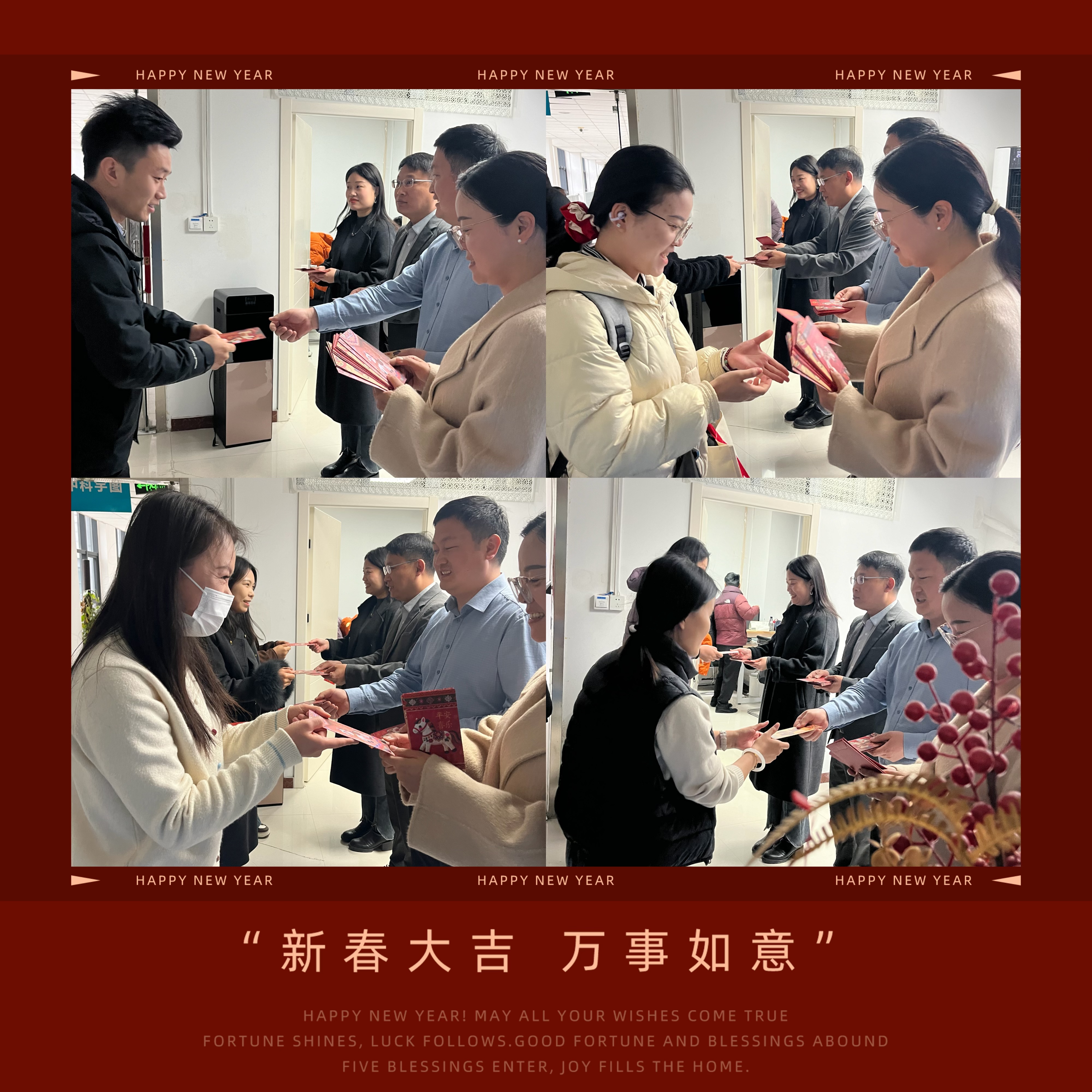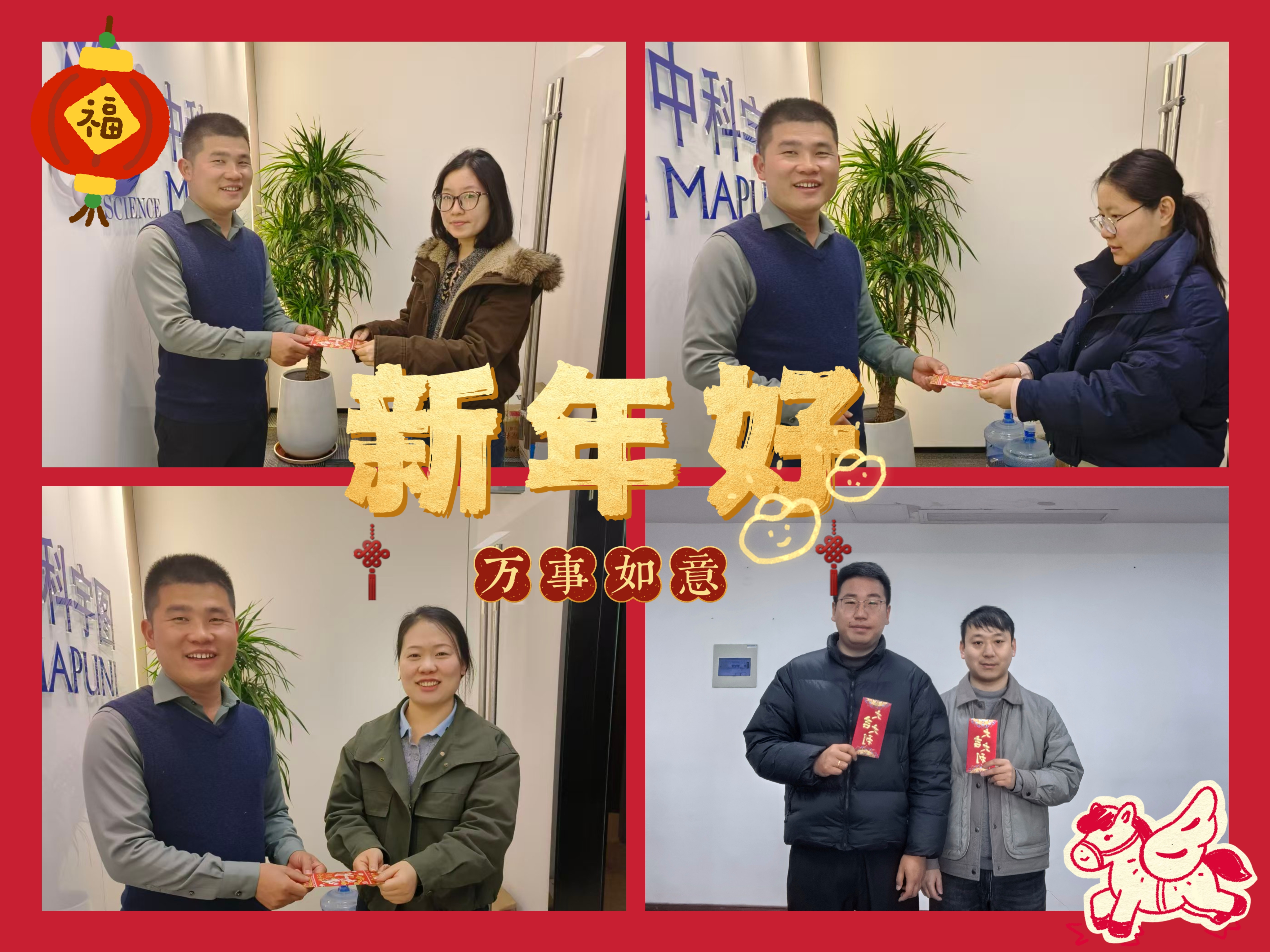 清晨的公司洋溢着喜庆的氛围,“新年好”“开工大吉”的问候声此起彼伏。一张张灿烂的笑脸,传递着重逢的喜悦;一份份寓意吉祥的开年红包,承载着公司对每一位员工的深切祝福与殷切期望,预示着中科宇图在新的一年里必将红红火火、一马当先!